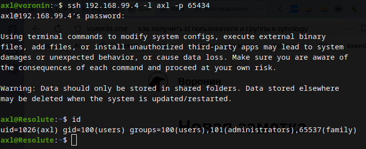 -e SYNAPSE_REPORT_STATS=yes \в скрипт подставляем «user 1026:100» uid и gid полученные выше