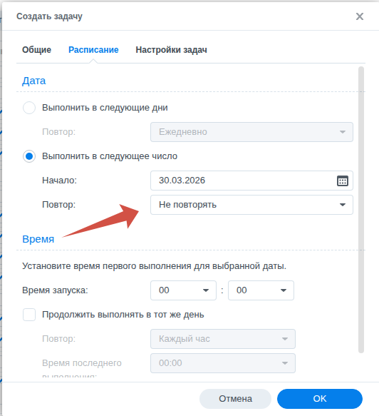 в расписание обязательно «не повторять»