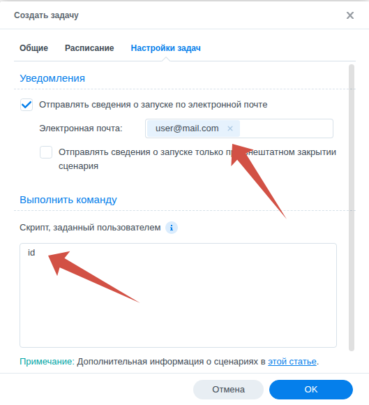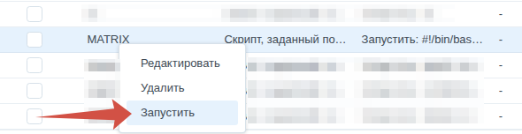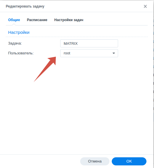 создаём задачу «MATRIX», указываем пользователя «root» и обязательно отключаем
