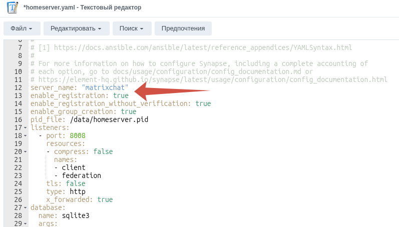 отредактируем файл конфигурации нашего сервера