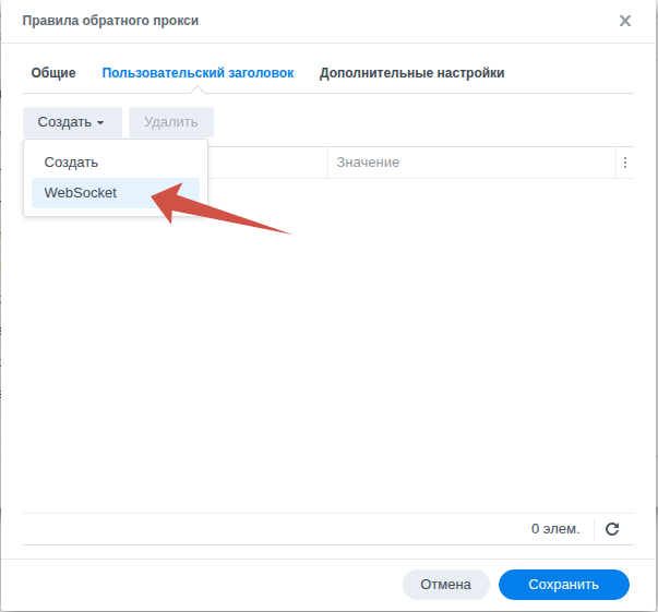 создаём новую запись, указываем имя нашего сервера, например «im.server.ru», порт 443, обязательно включаем HSTS и порт нашего контейнера 8450