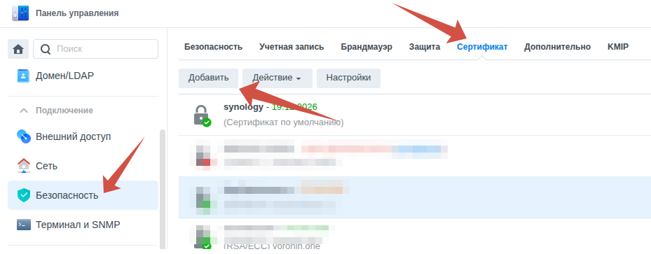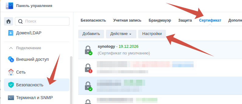 идём в настройки и назначаем сертификат домену