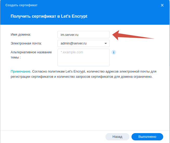 выпускаем сертификат для нашего сервера