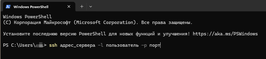 далее подключаемся по SSH (в linux и так понятно) в windows откройте терминал Win+X